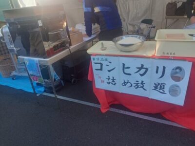 コシヒカリ一升マス盛り放題と焼き芋の販売をしましたが、米4俵とサツマイモ(ベニハルカ)20キロが完売しました。