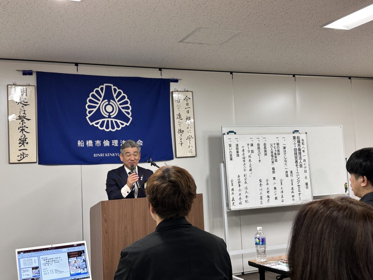 船橋市倫理法人会が2300回記念モーニングセミナー 県副会長・信太英紀さんが幸せの秘訣語る