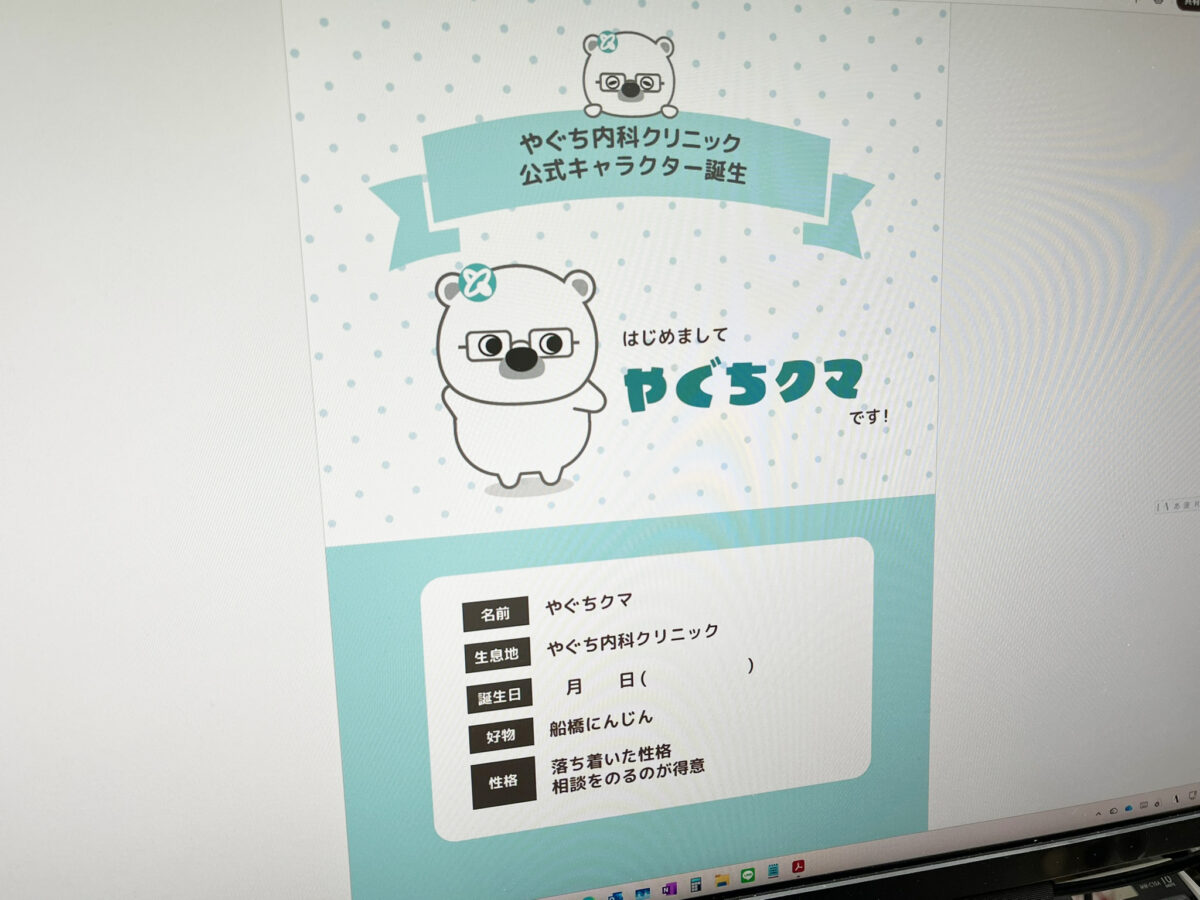 やぐちクマは現在のところ、まだクリニック内の掲示物には登場していないが、配布物の飾りとして少し登場させている程度。「せっかく作ってもらったので活用していければ」と矢口院長は話す。
