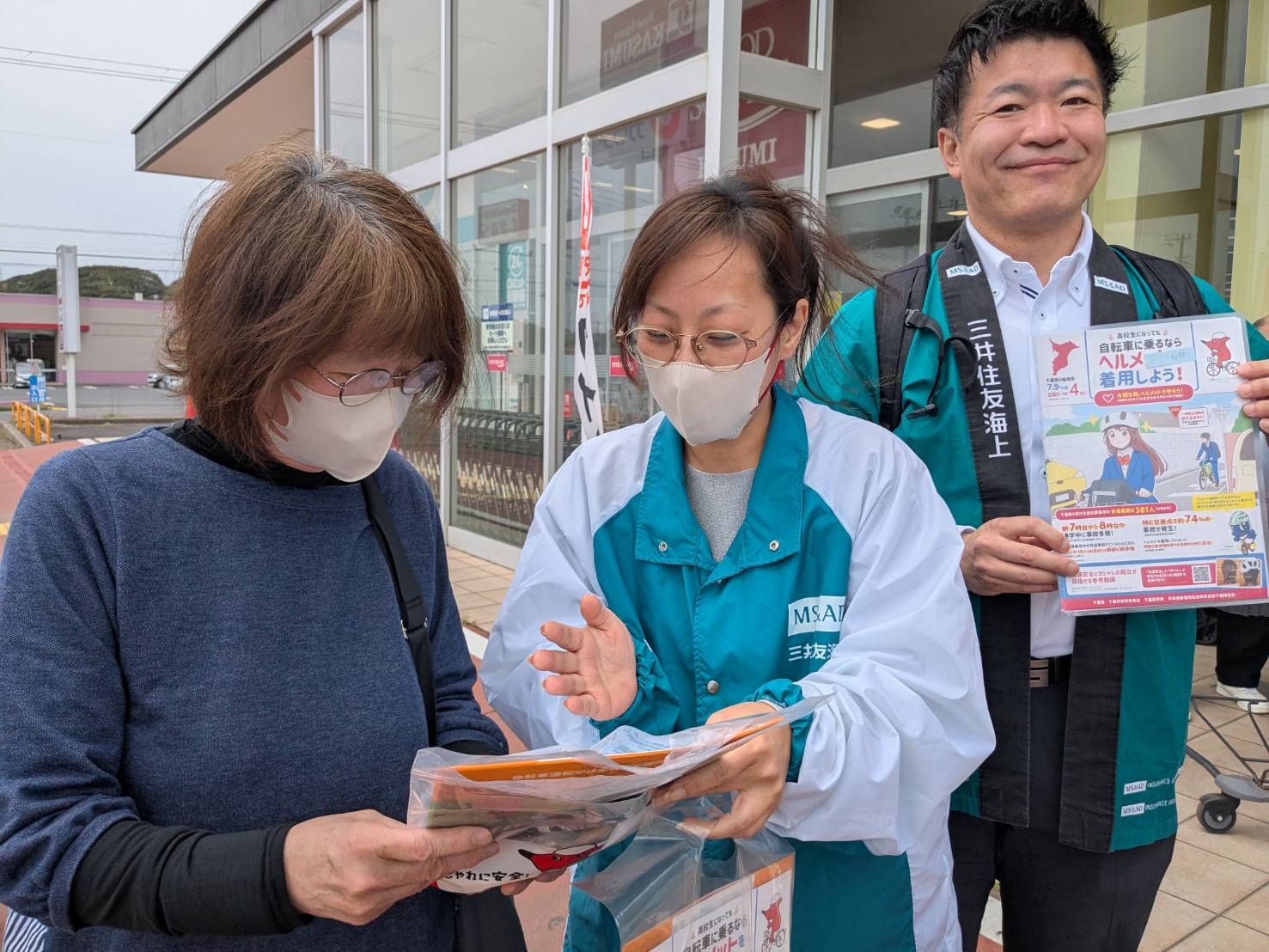 銚子市・旭市で交通安全啓発 三井住友海上が警察と連携、自転車ヘルメット着用呼び掛け