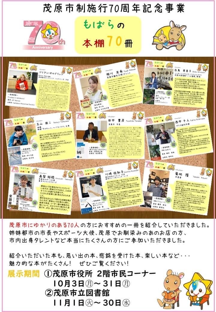No.32 茂原市制施行70周年記念事業「もばらの本棚70冊」 展示期間11月1日~11月30日 茂原市図書館