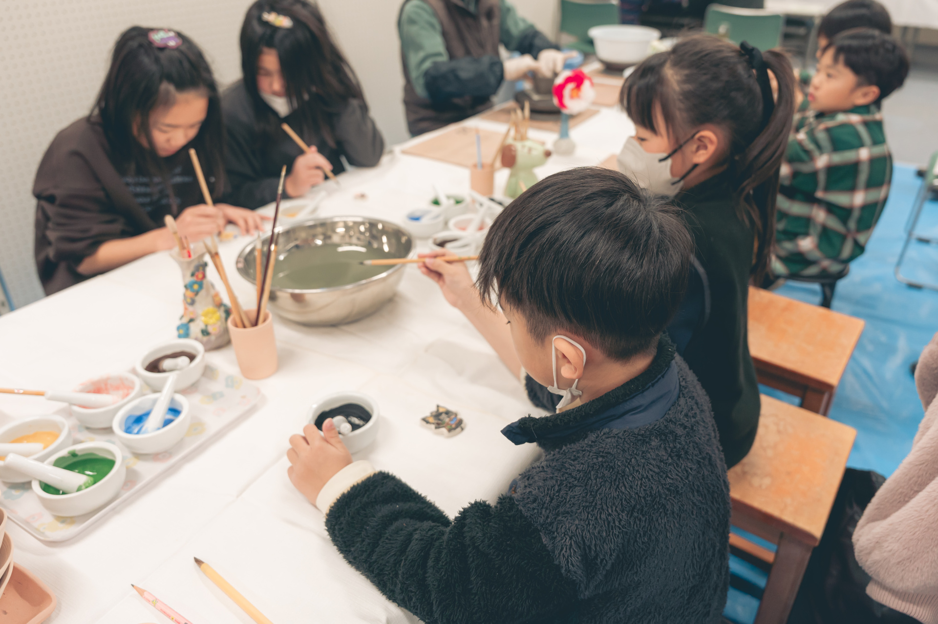 子どもを連れて参加した石毛さんは「たくさんの素敵な作品に囲まれ、子どもたちも楽しくペンダントの色付け体験ができた。先生のロクロ実演も素晴らしく、親子で興味深く見た」と話した。