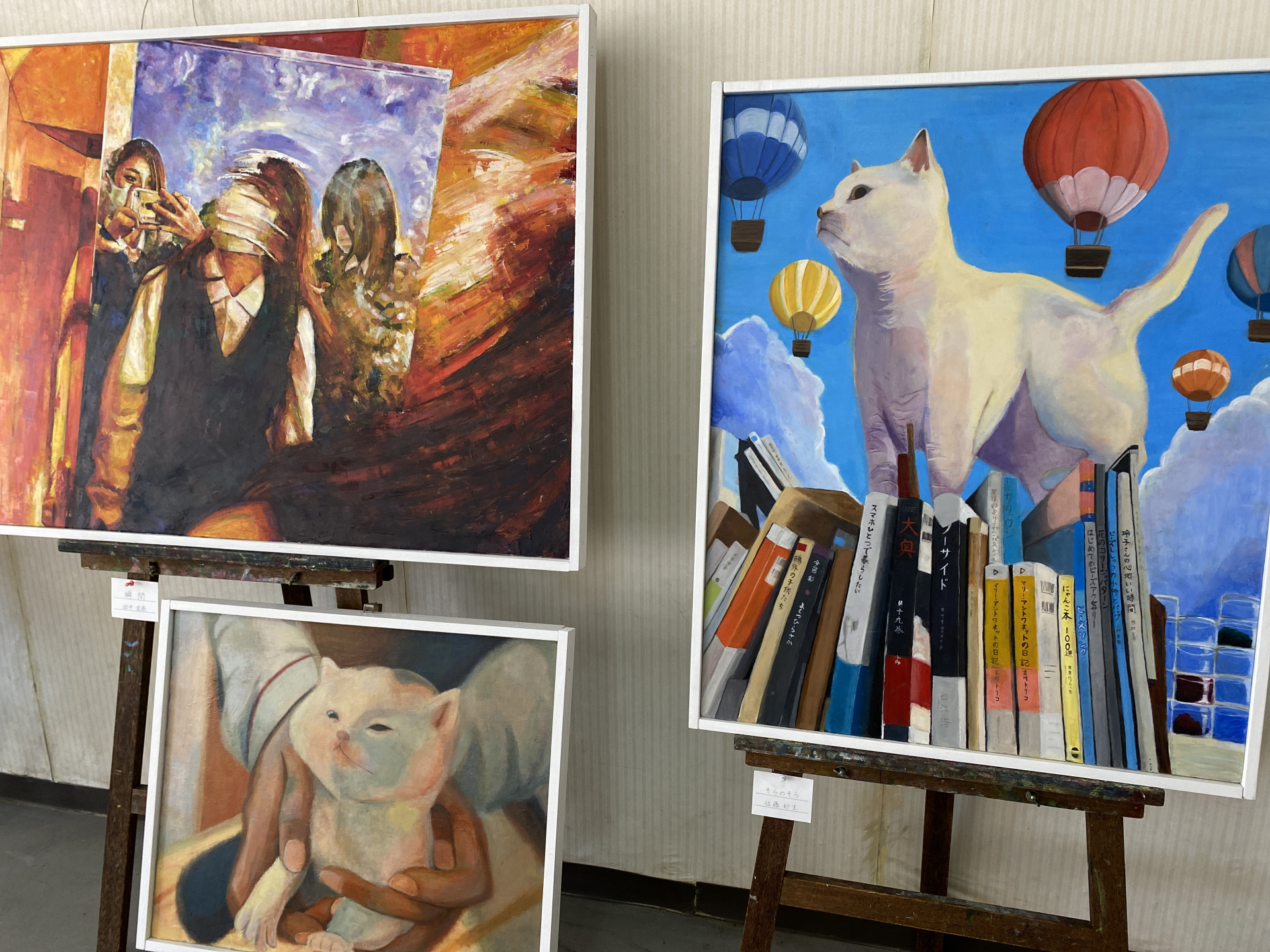 取材に訪れた日は企画展「猫と手紙」が開催中で、現役美大生である山本莉世さんと、山本さんの母校長生高校美術部の後輩たちの作品が数多く展示されていました。